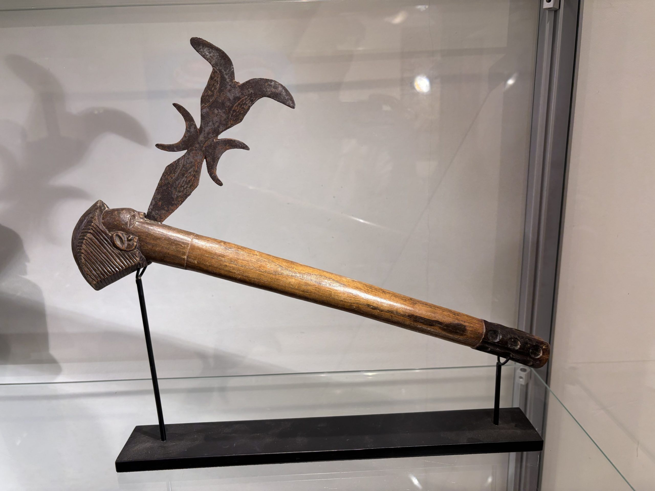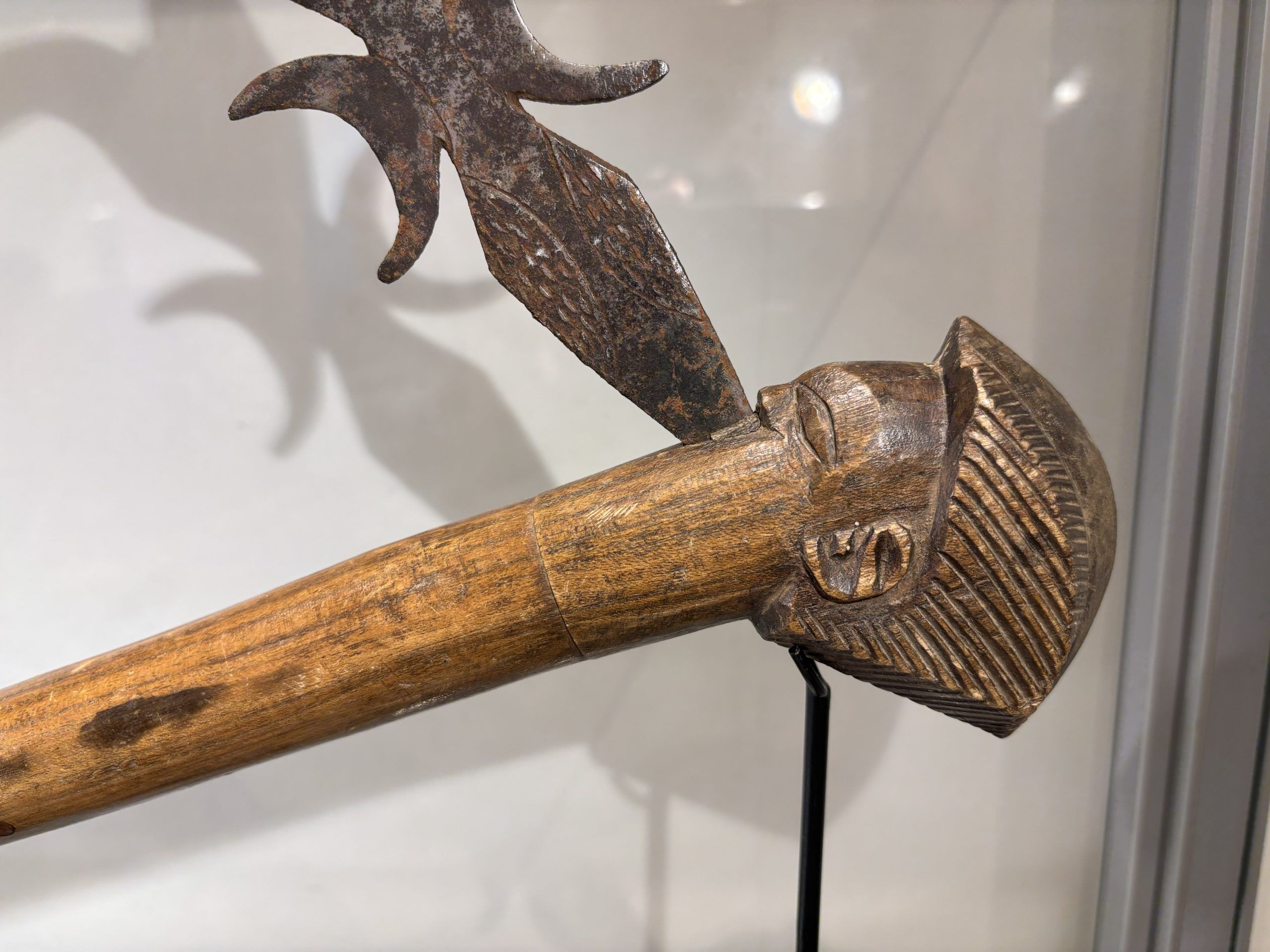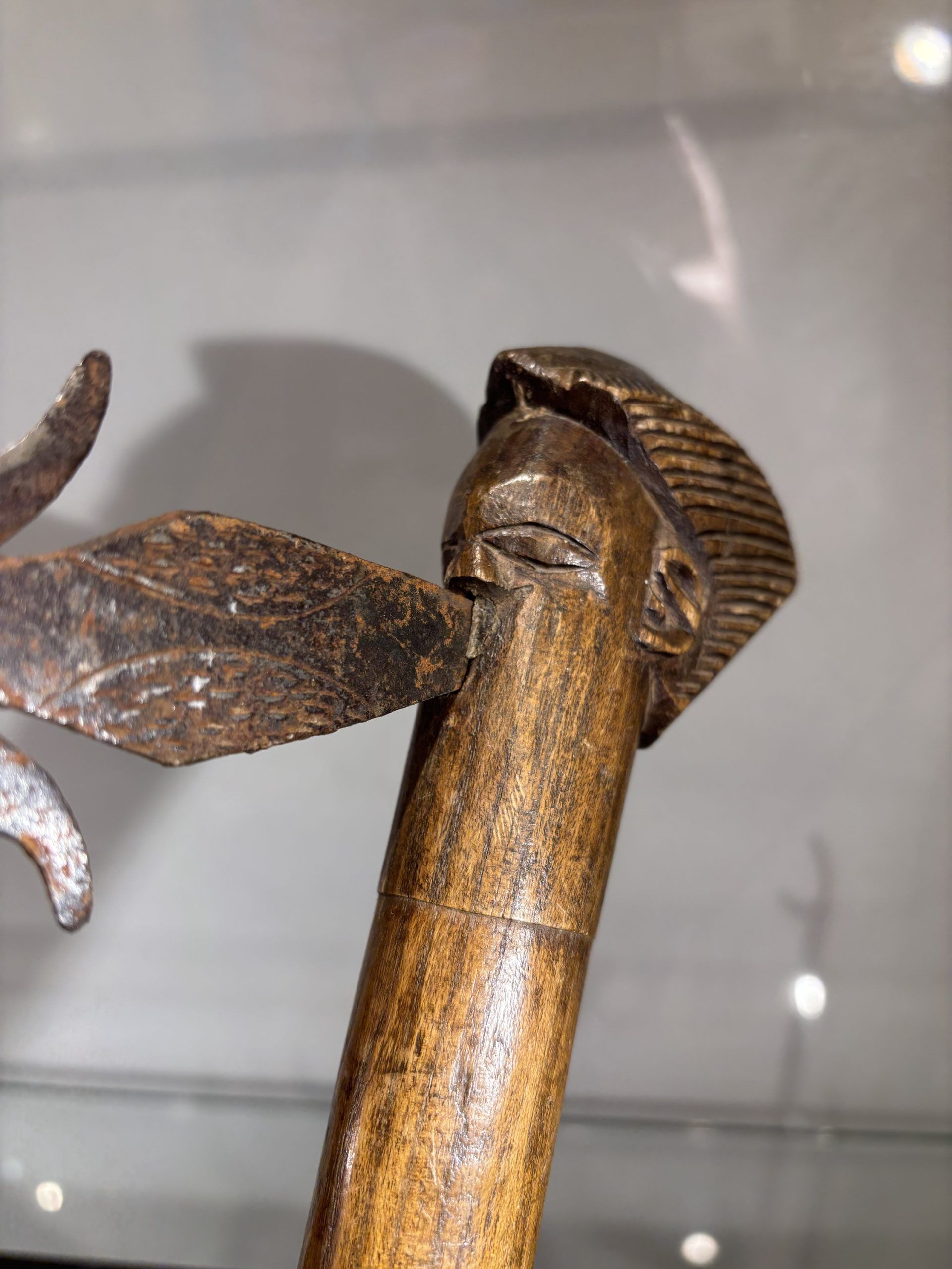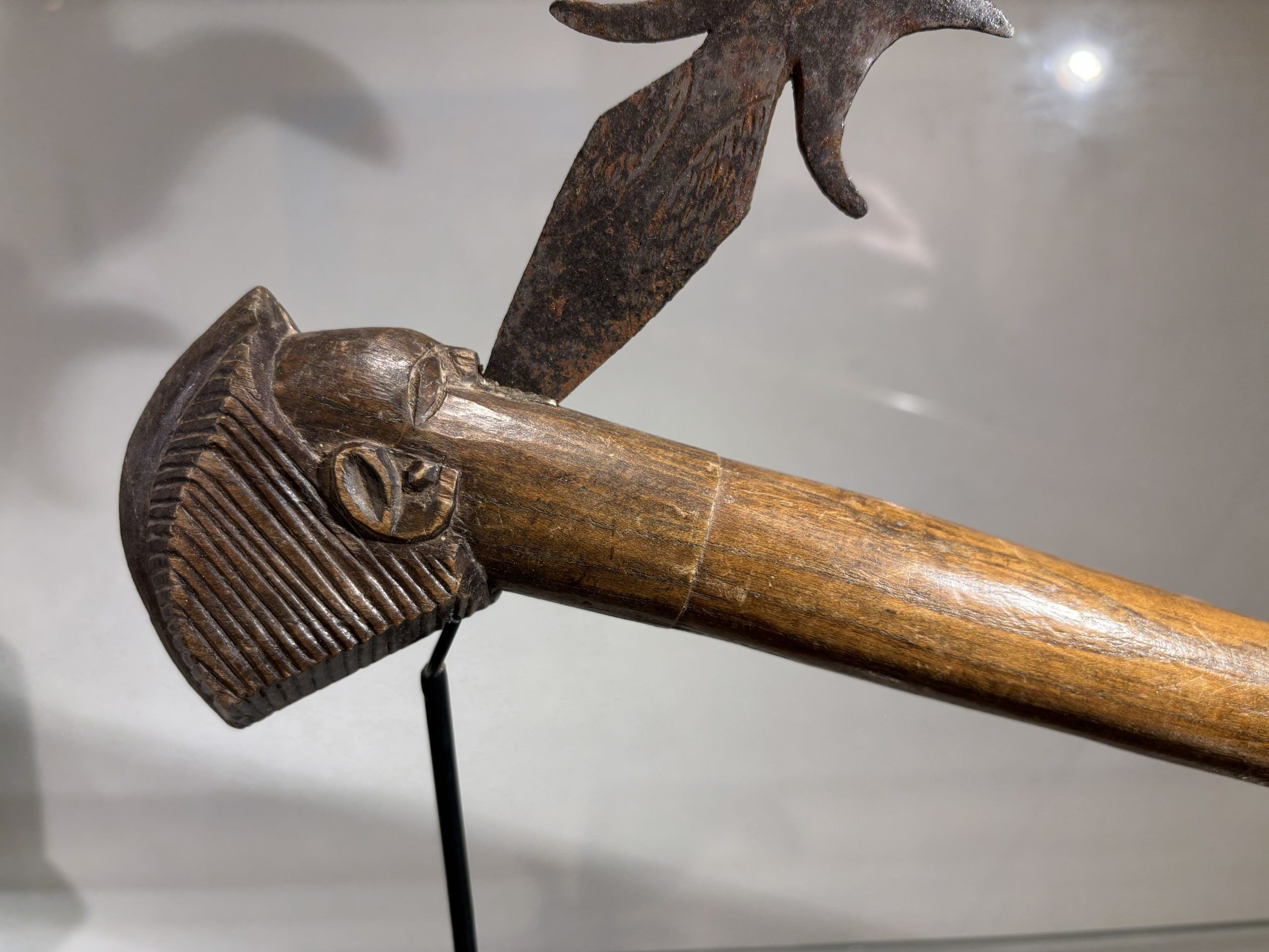 Prestige or trade axe in metal, wood, and lizard skin, forged by the Luba ethnic group (southern Congo)