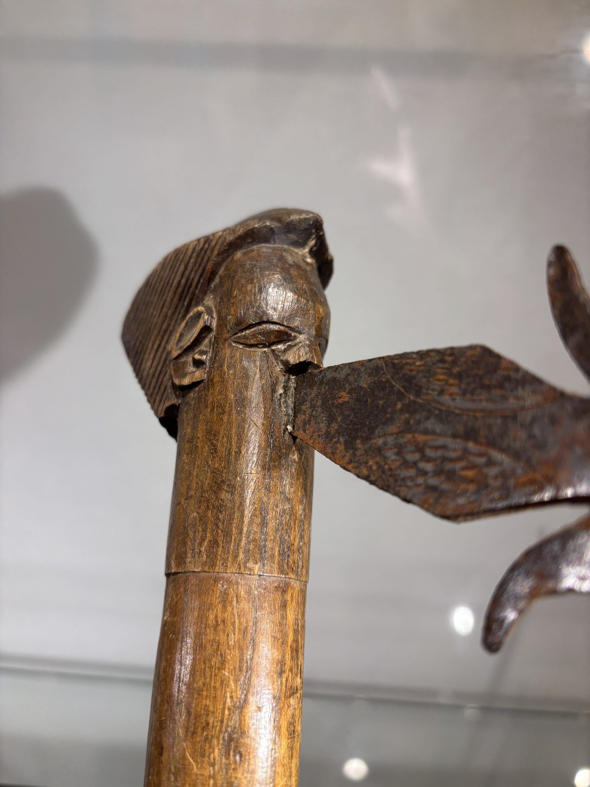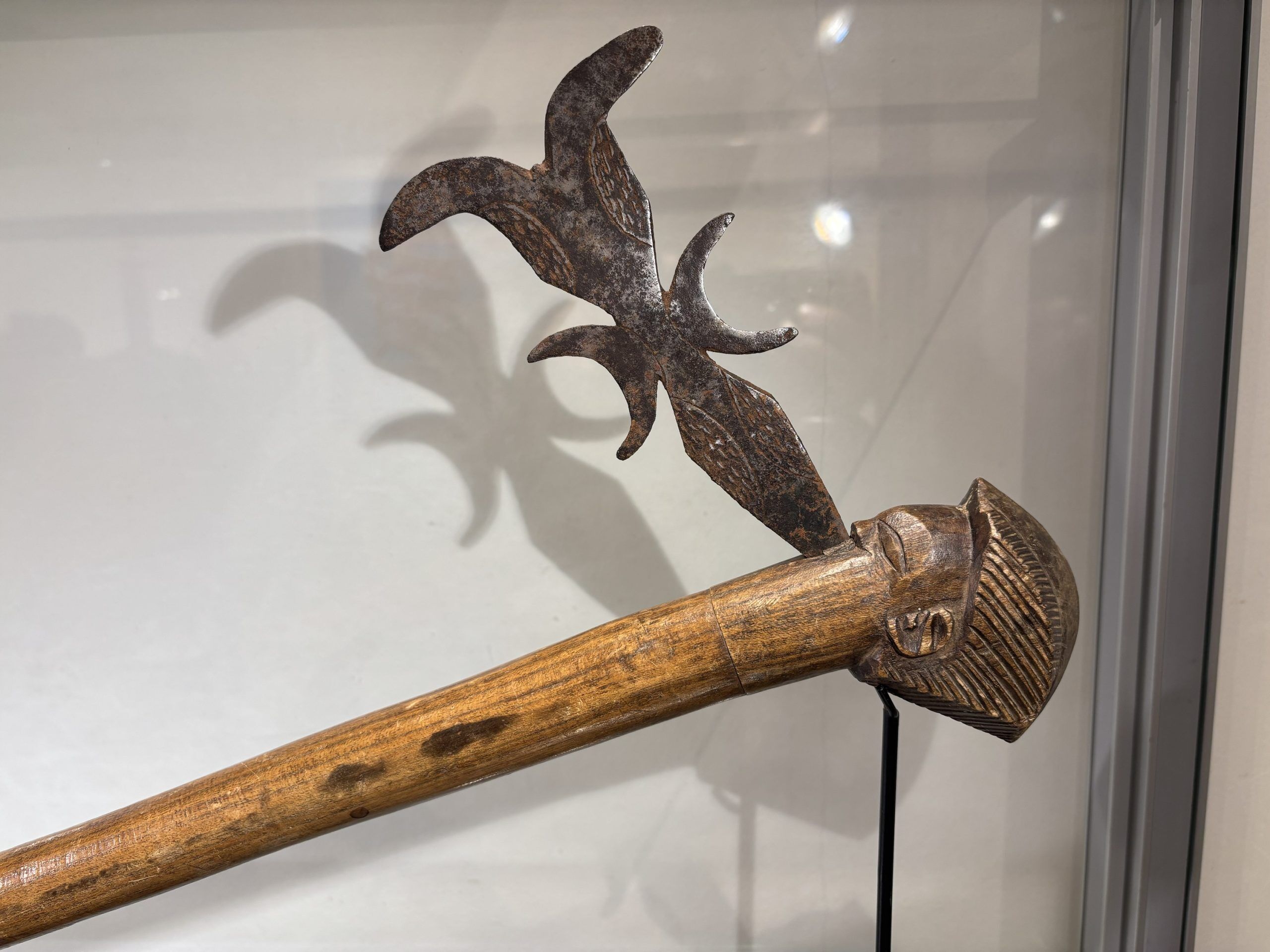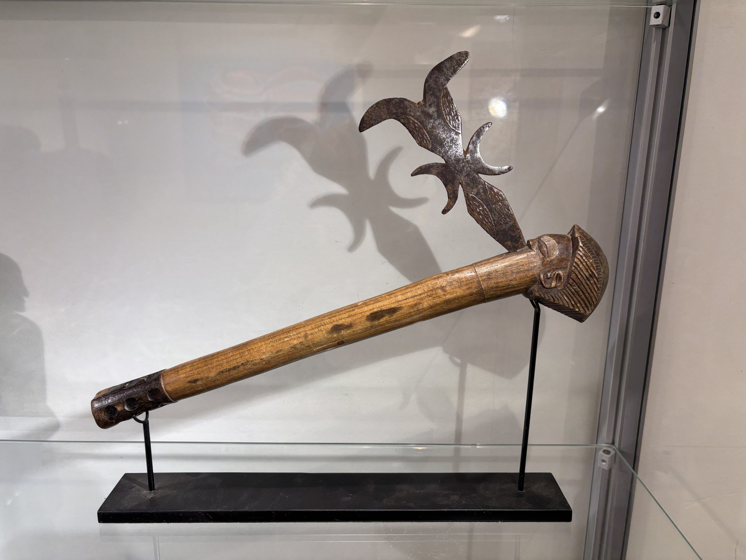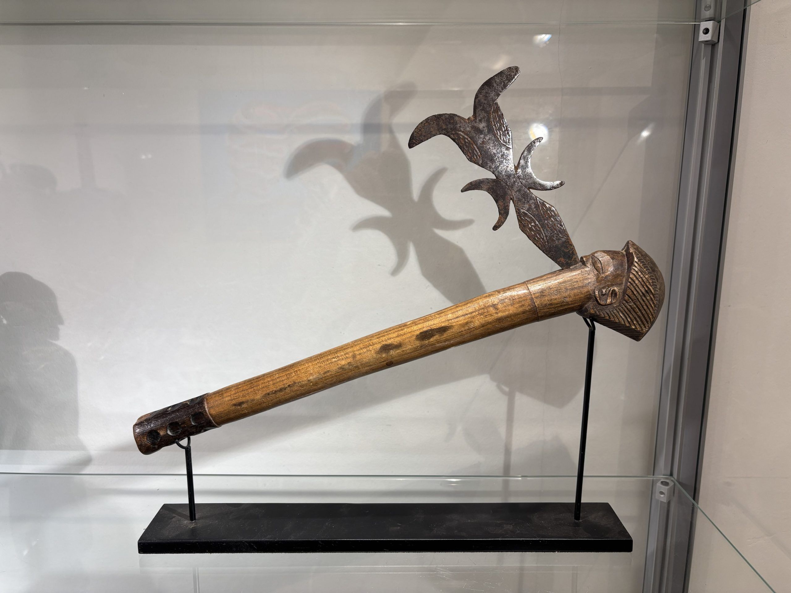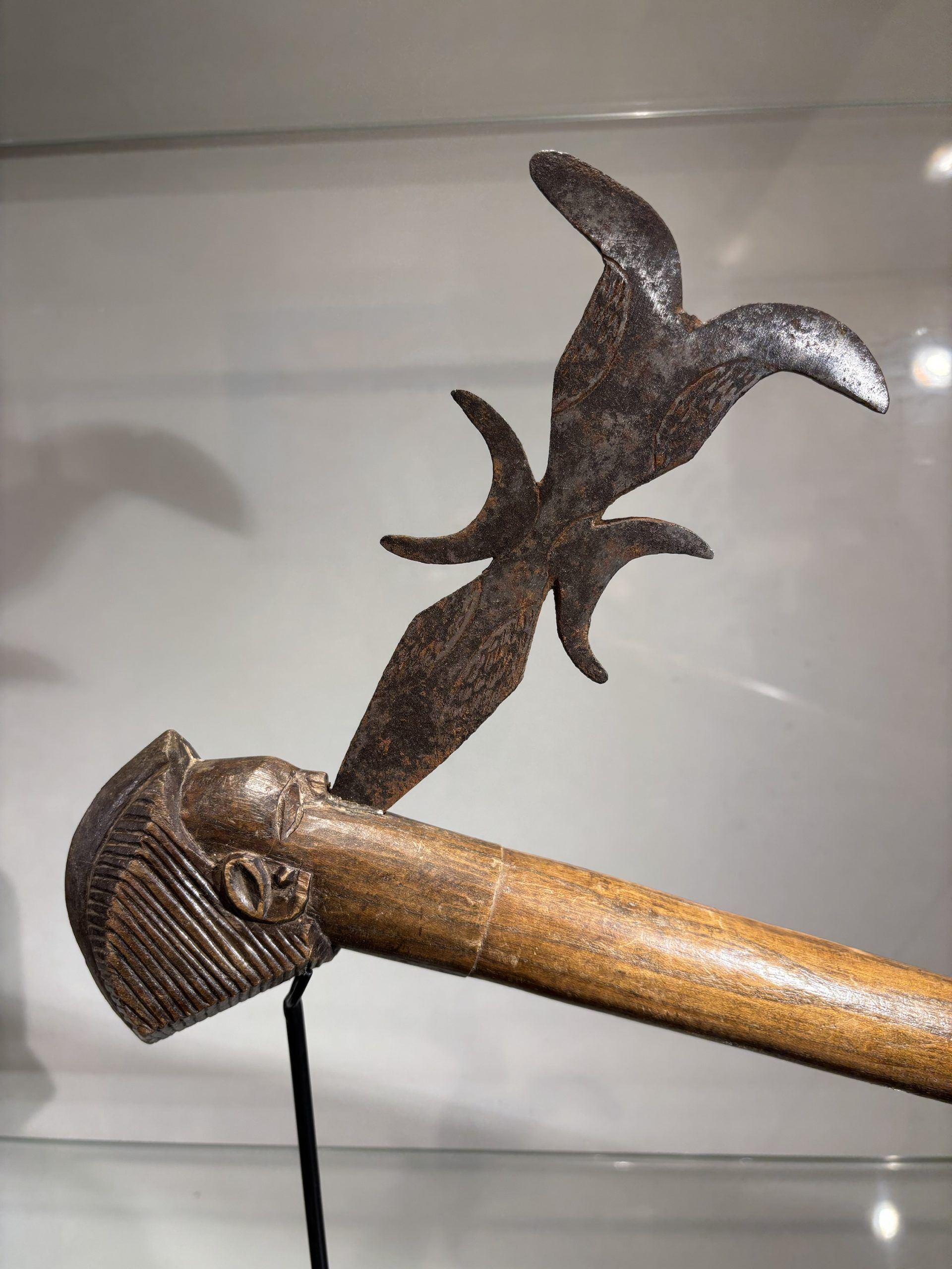 Prestige or trade axe in metal, wood, and lizard skin, forged by the Luba ethnic group (southern Congo)