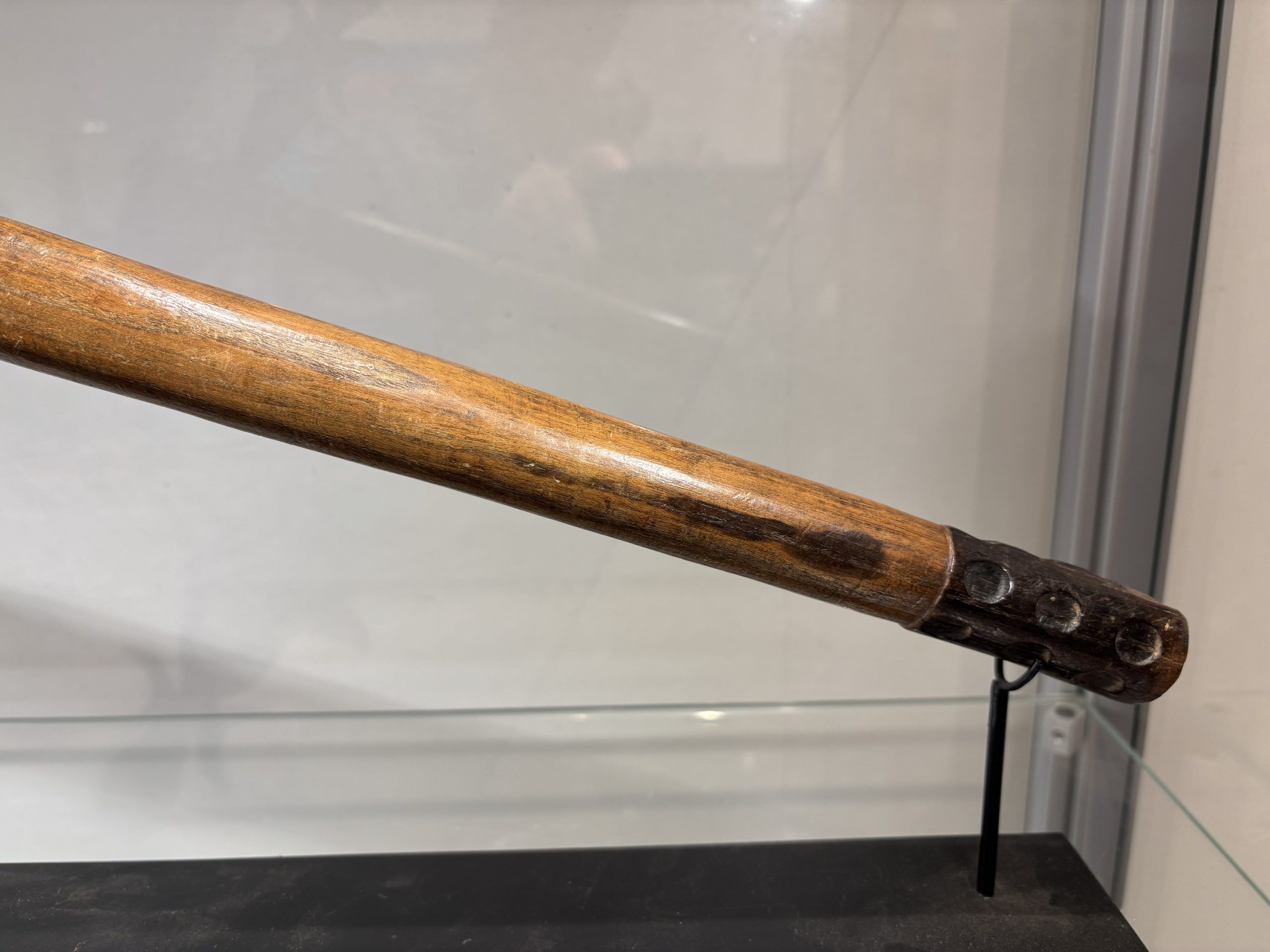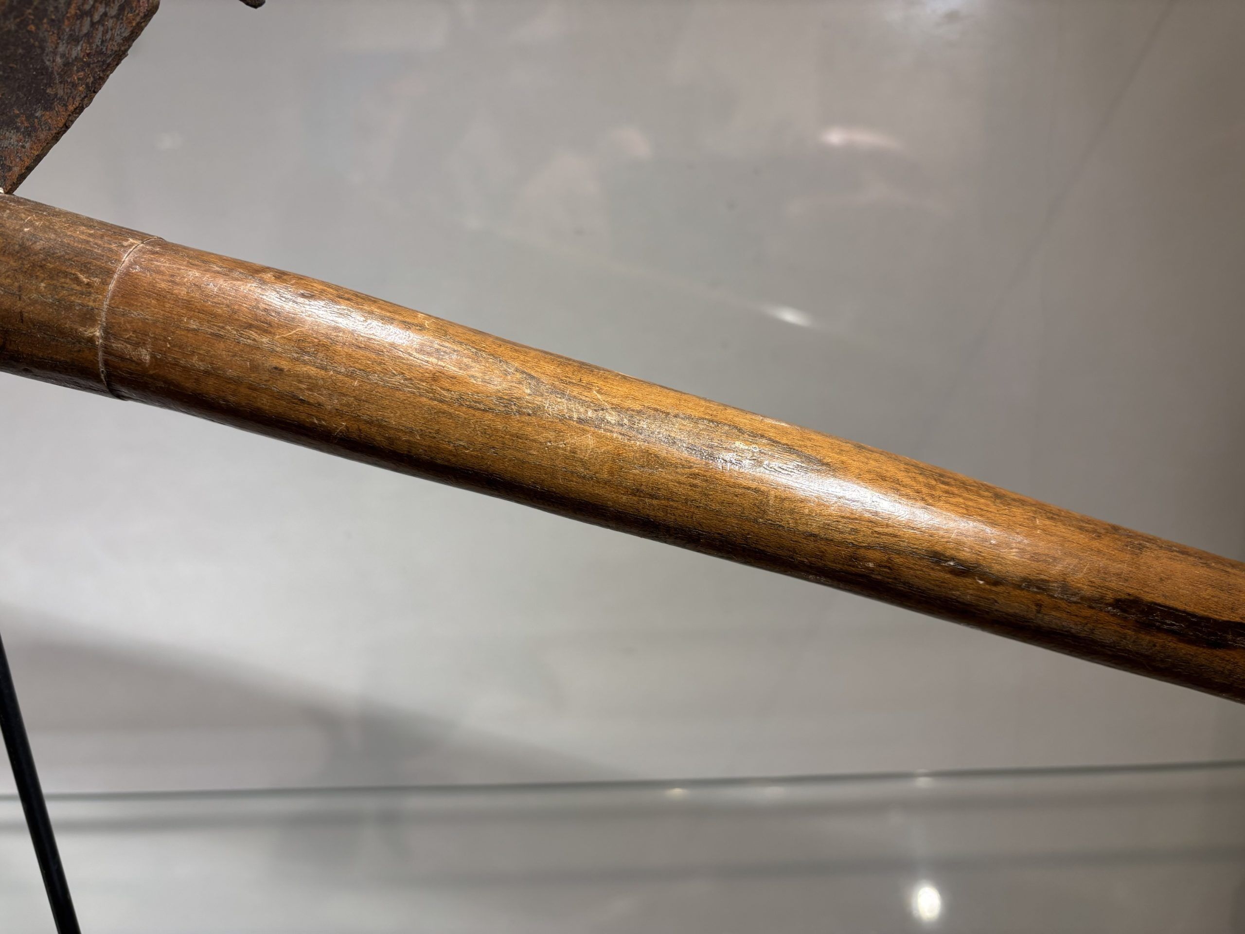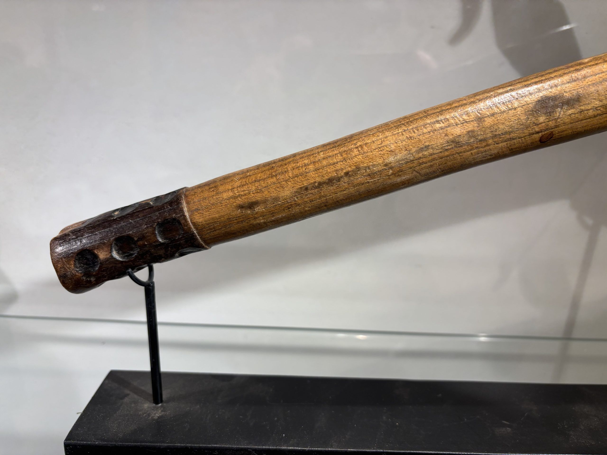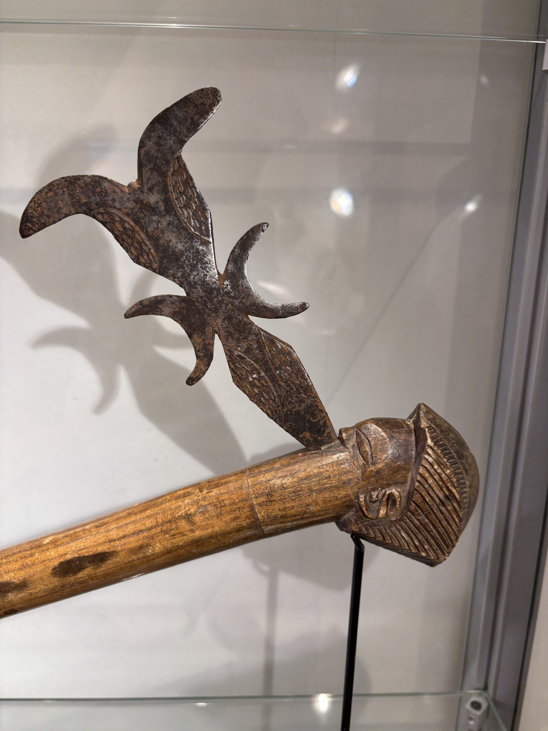 Prestige or trade axe in metal, wood, and lizard skin, forged by the Luba ethnic group (southern Congo)