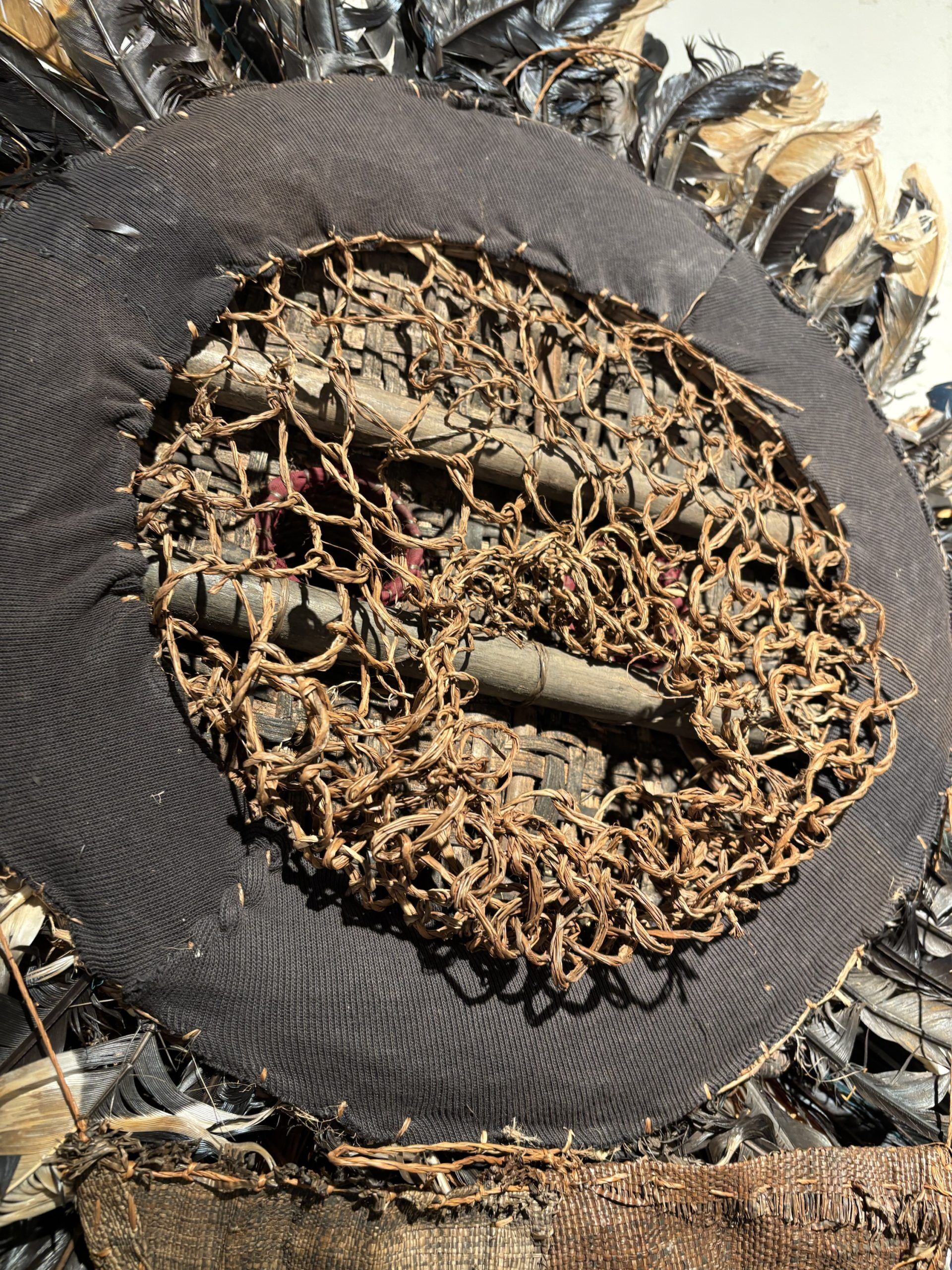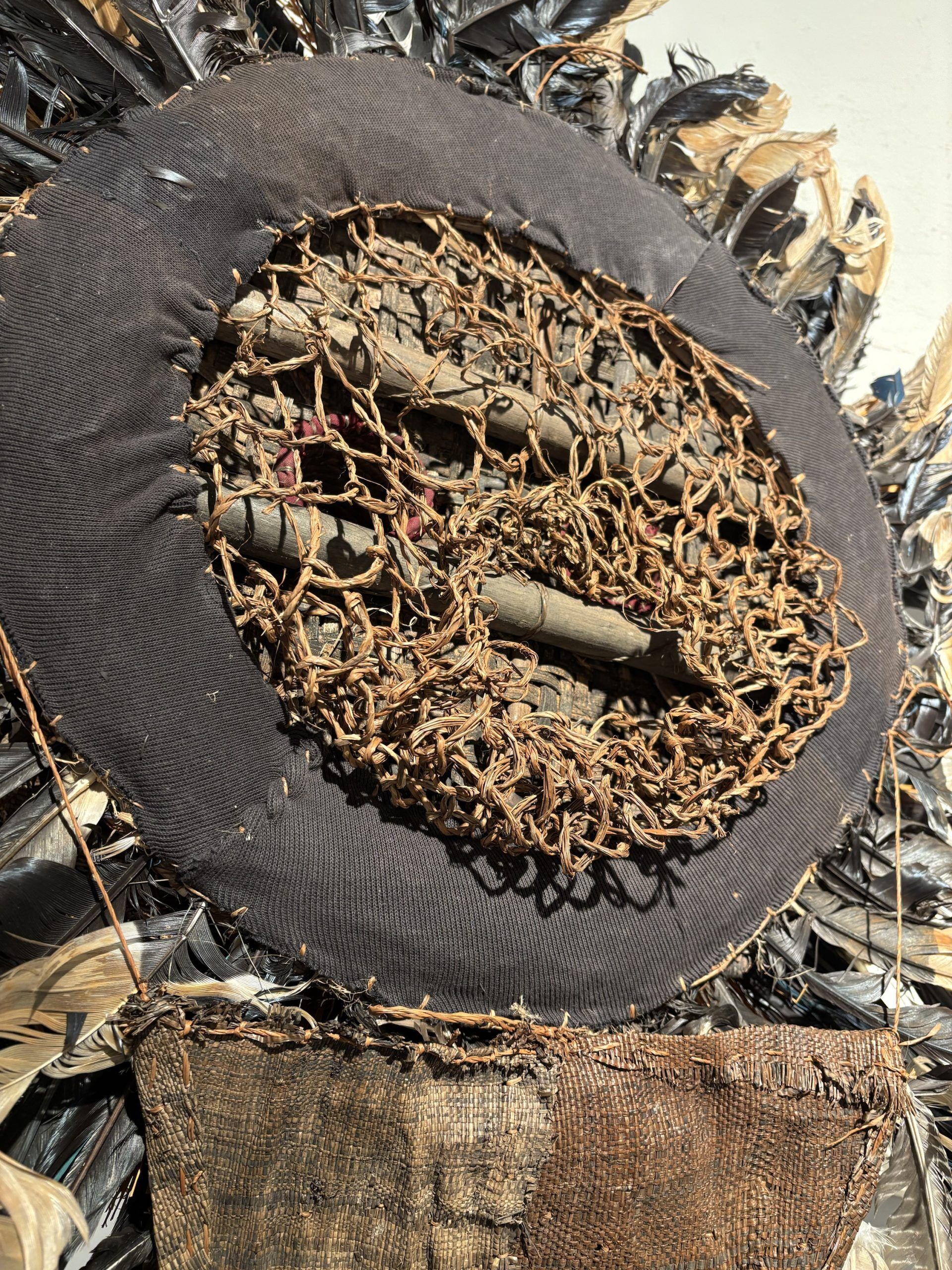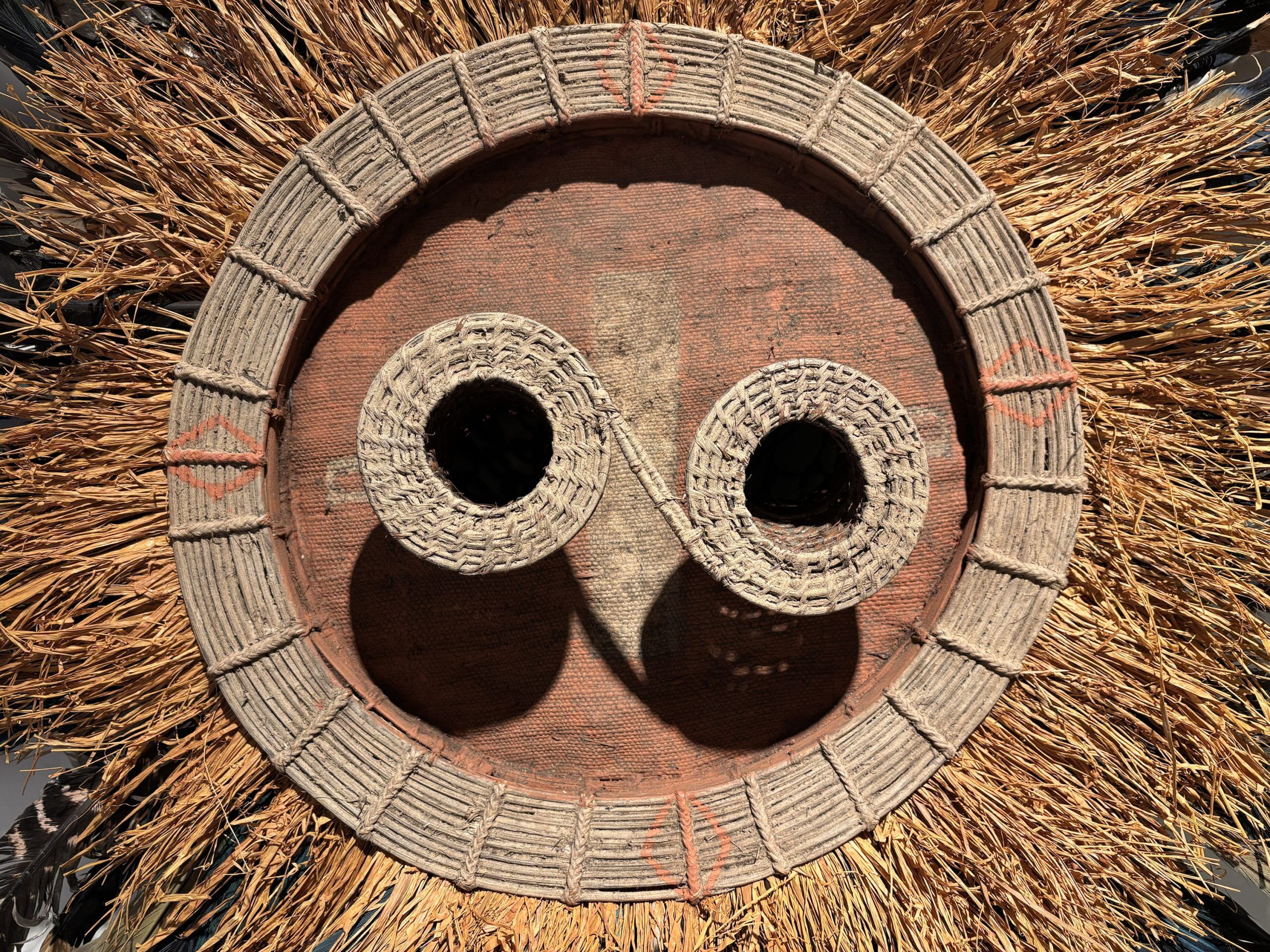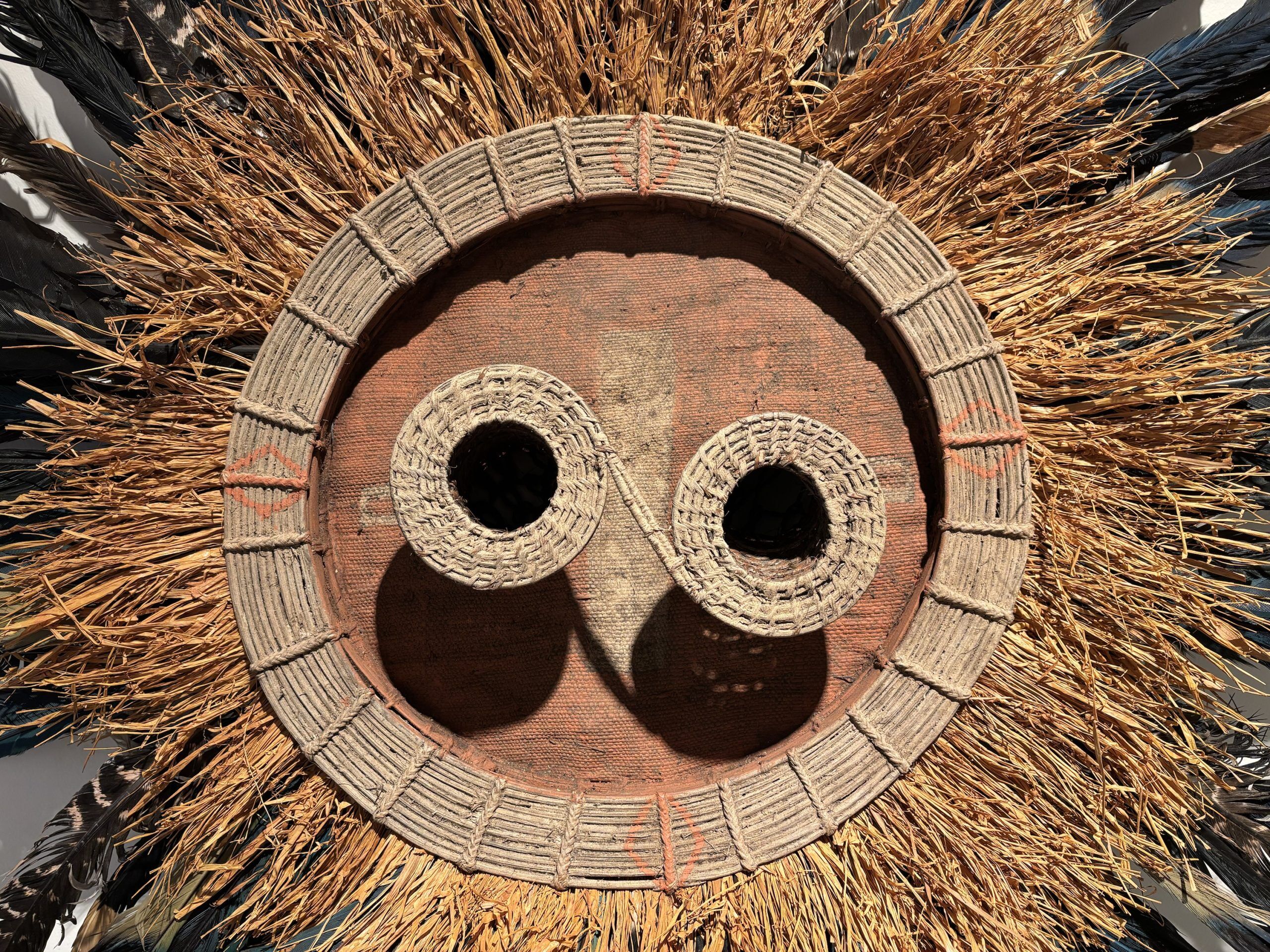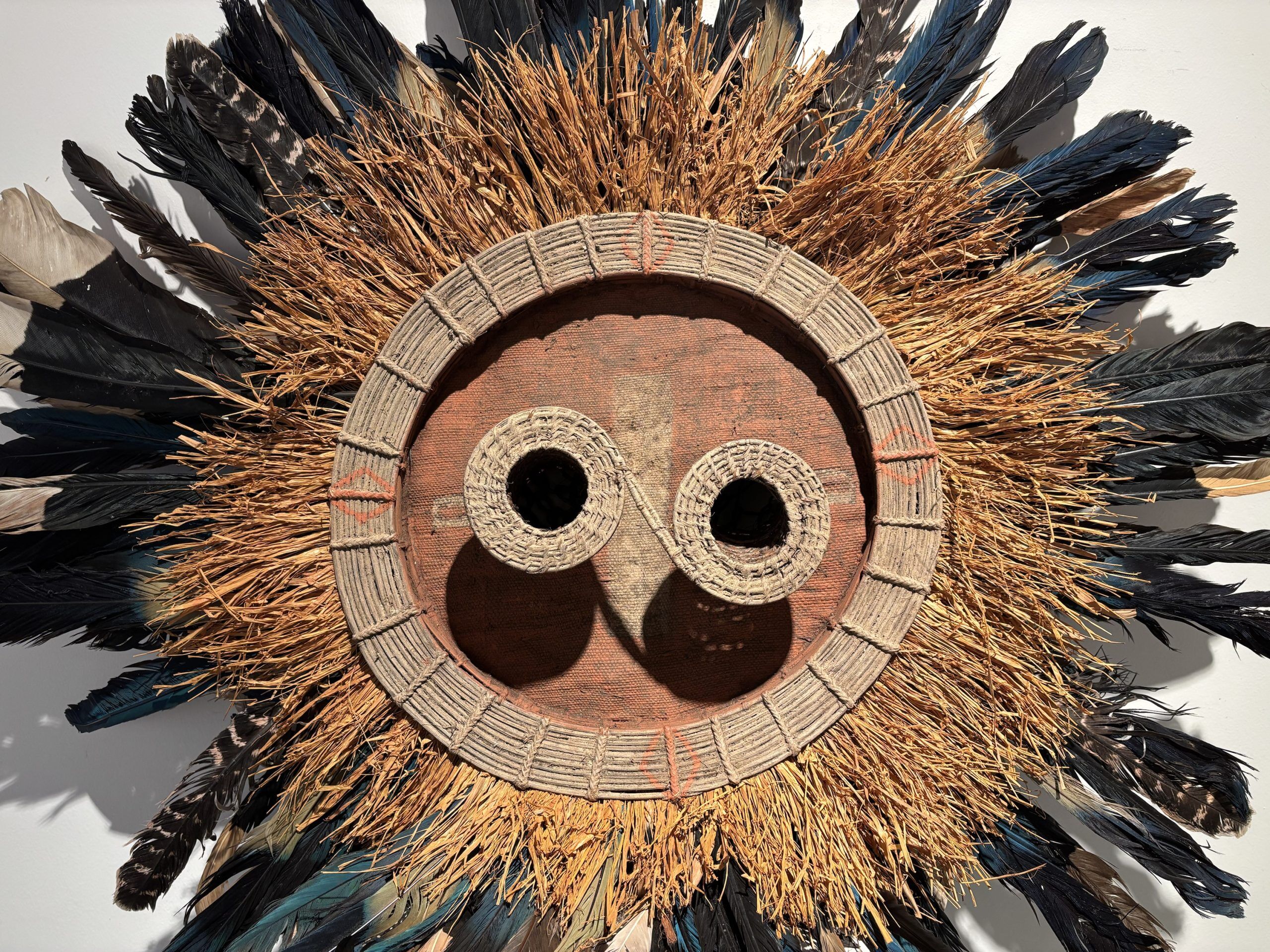 Très beau masque de danse de l’ethnie Pende (Sud Congo) de type Solaire en bois, plumes et fibres végétales