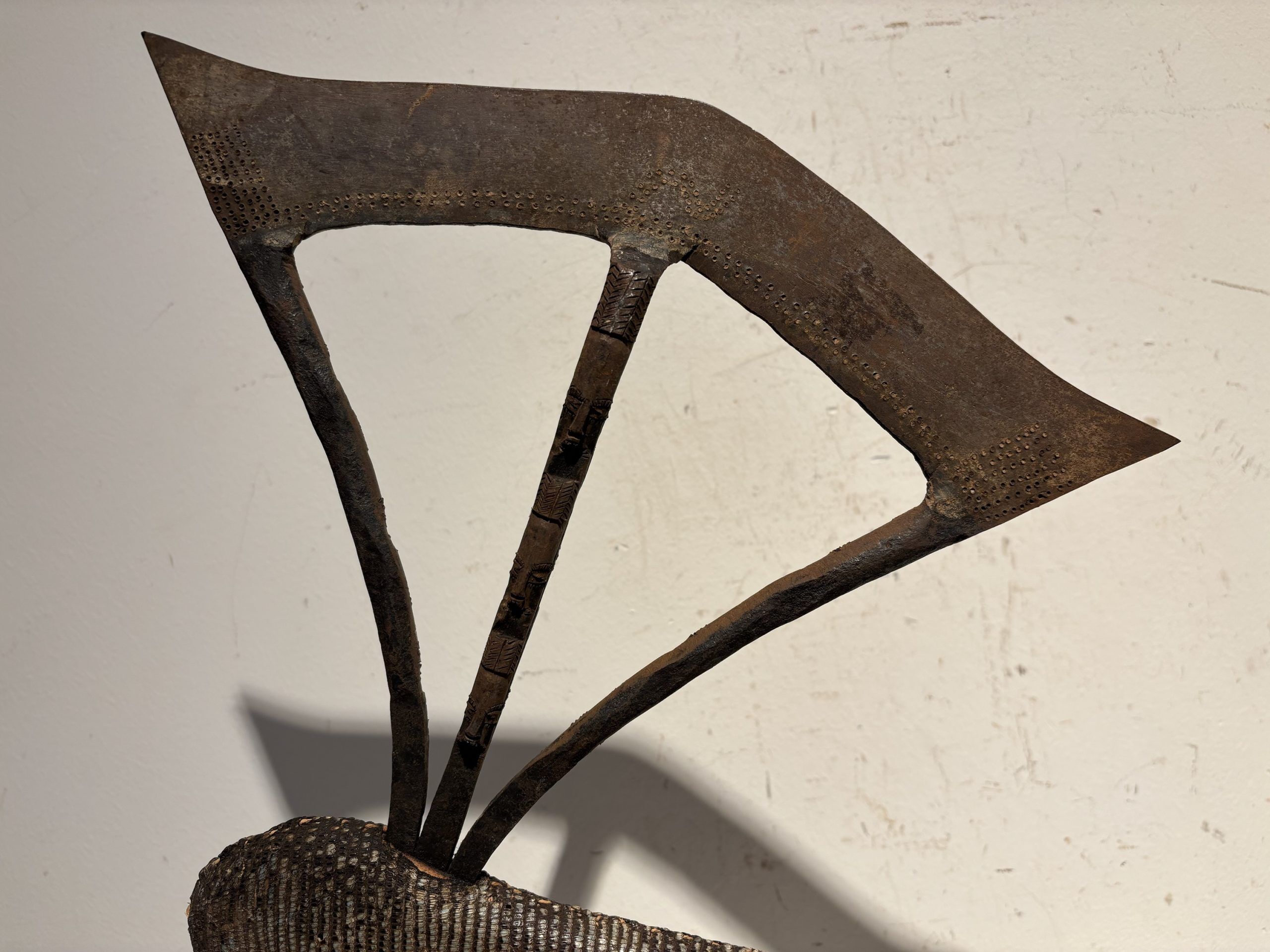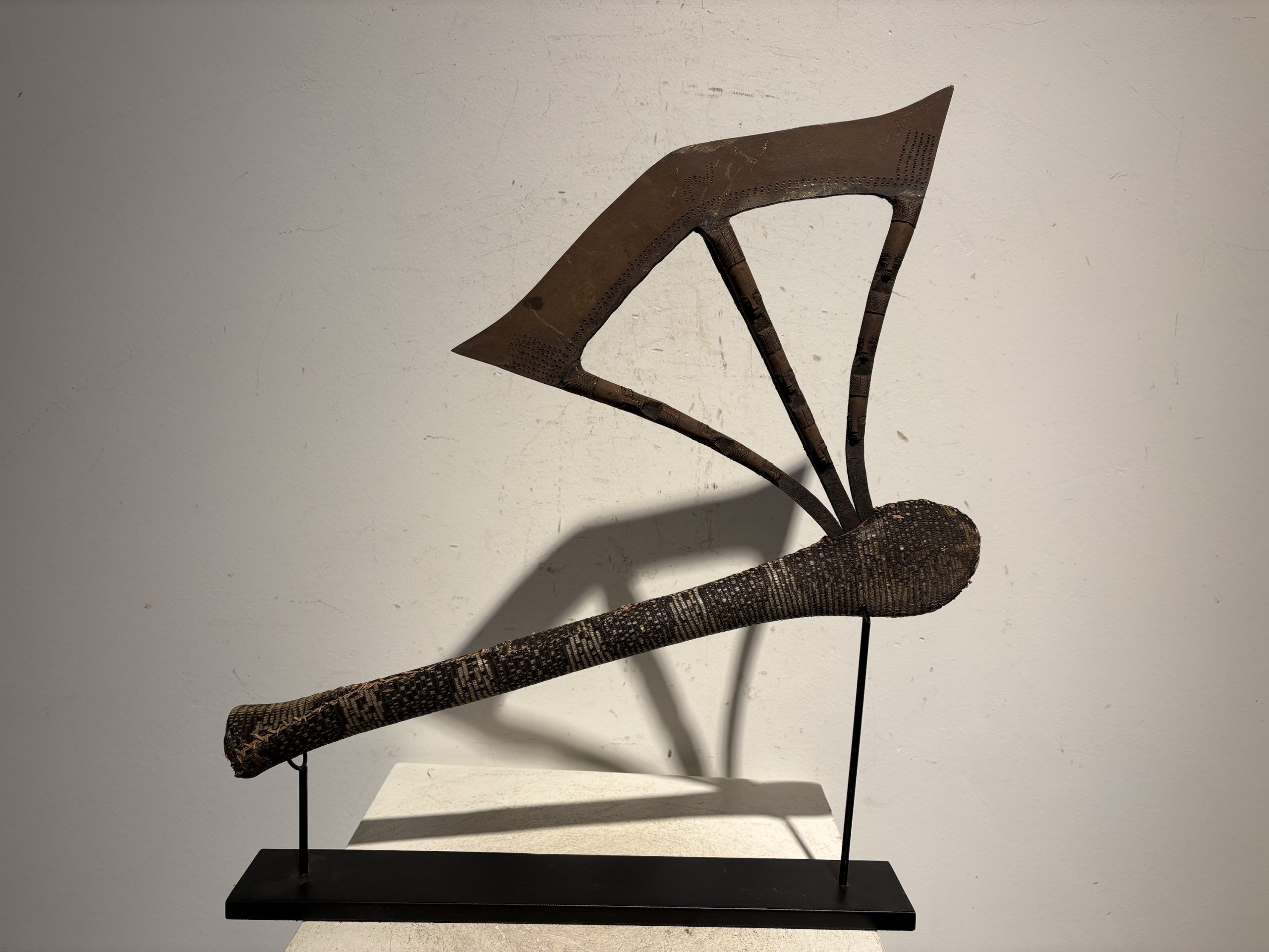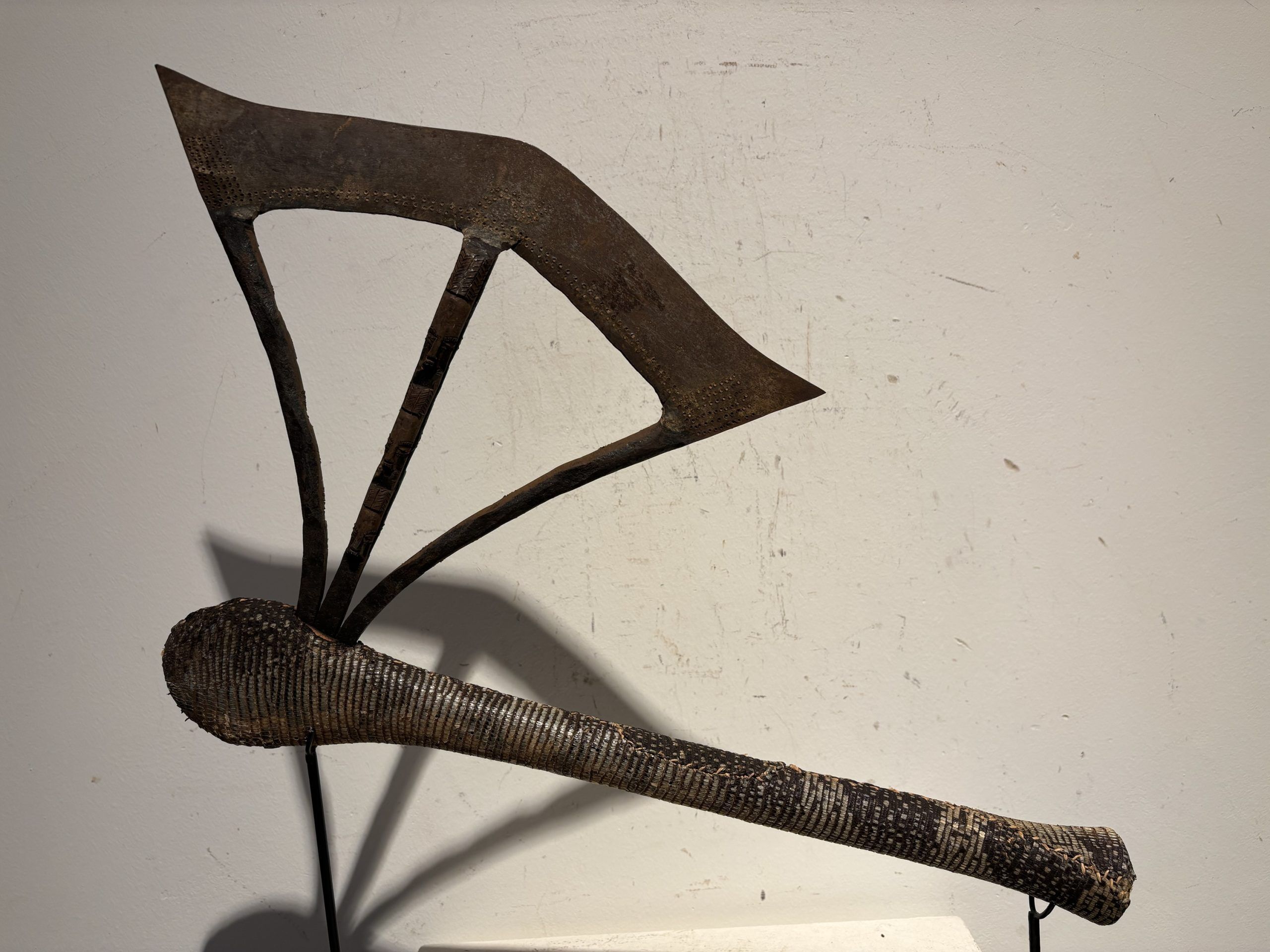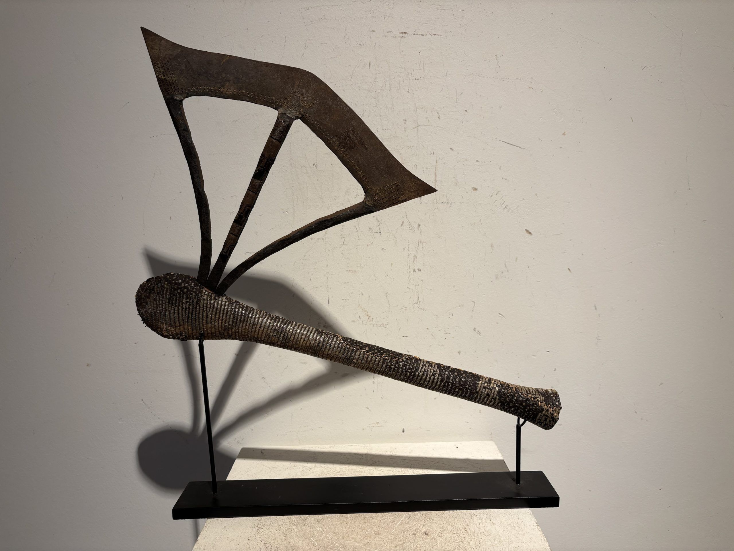 Prestige or trade axe in metal, wood, and lizard skin, forged by the Songye ethnic group (southern Congo)