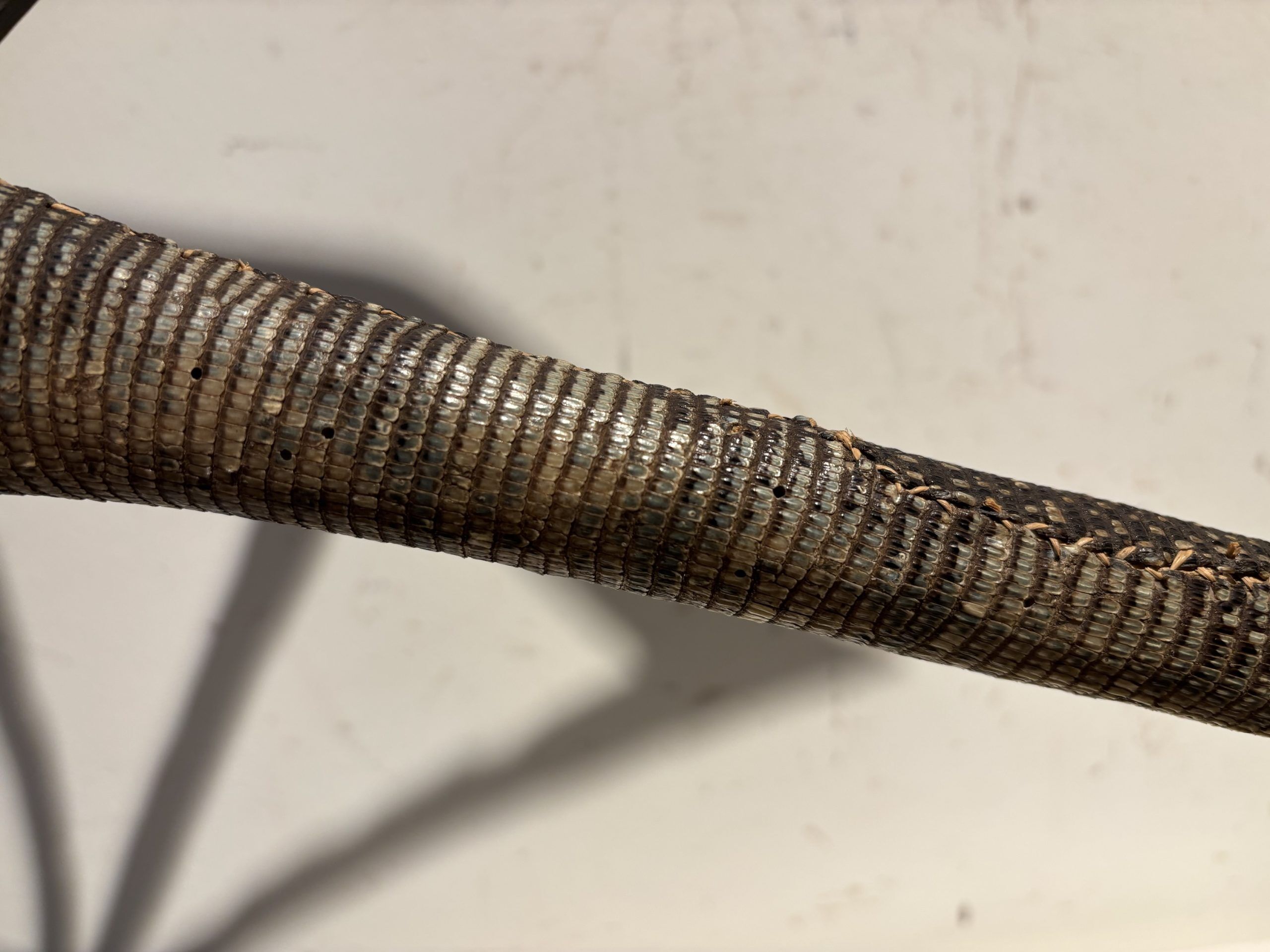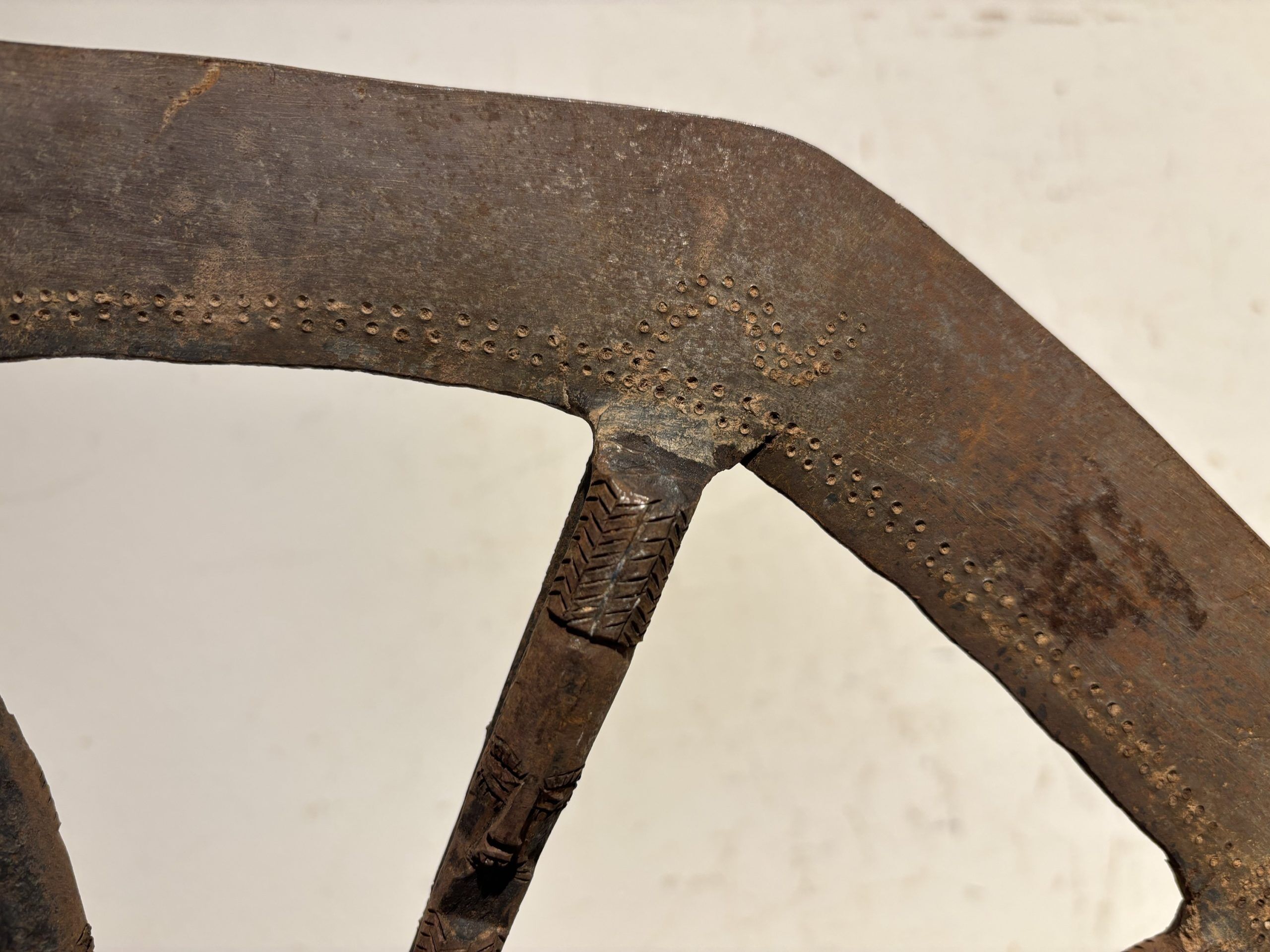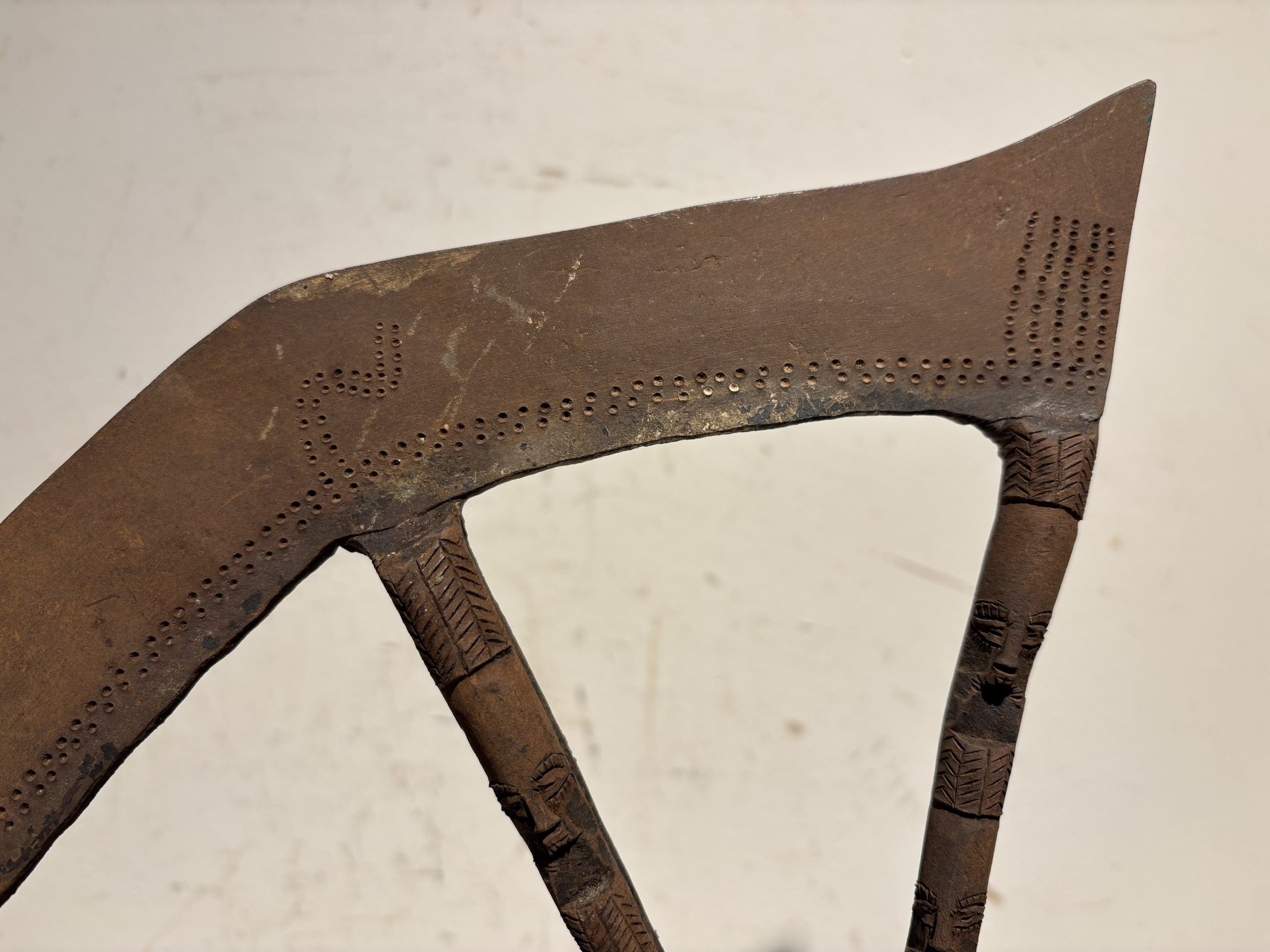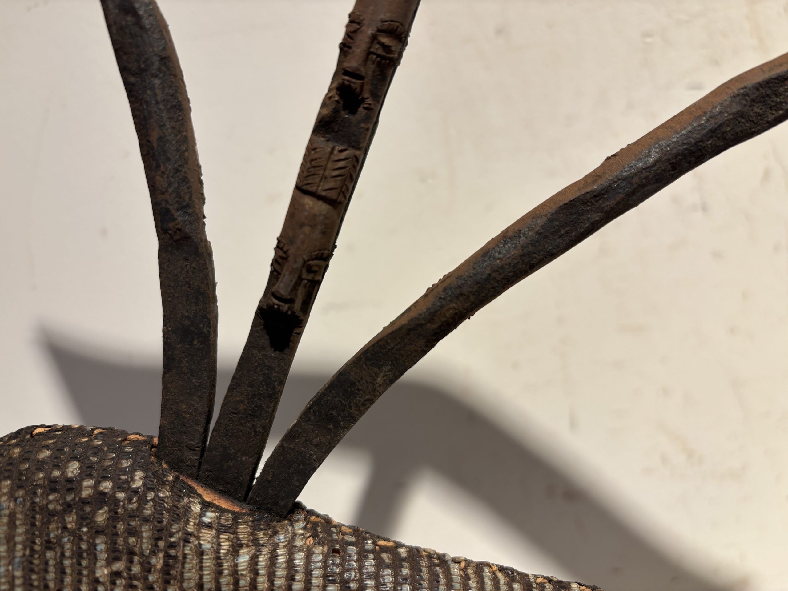 Prestige or trade axe in metal, wood, and lizard skin, forged by the Songye ethnic group (southern Congo)